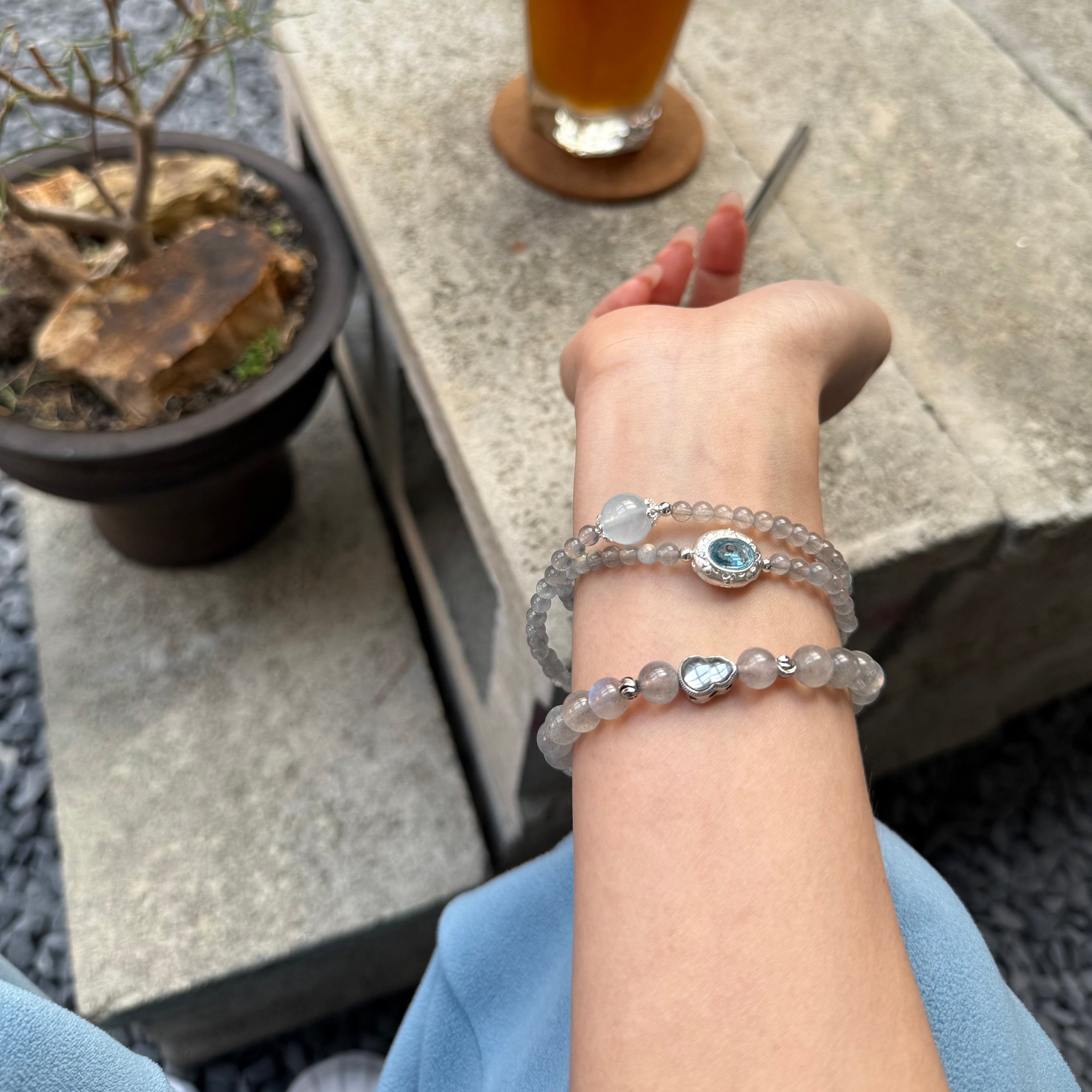 Lunar Tidepool - Dual Gray Moonstone & Aquamarine Mystery Bracelet